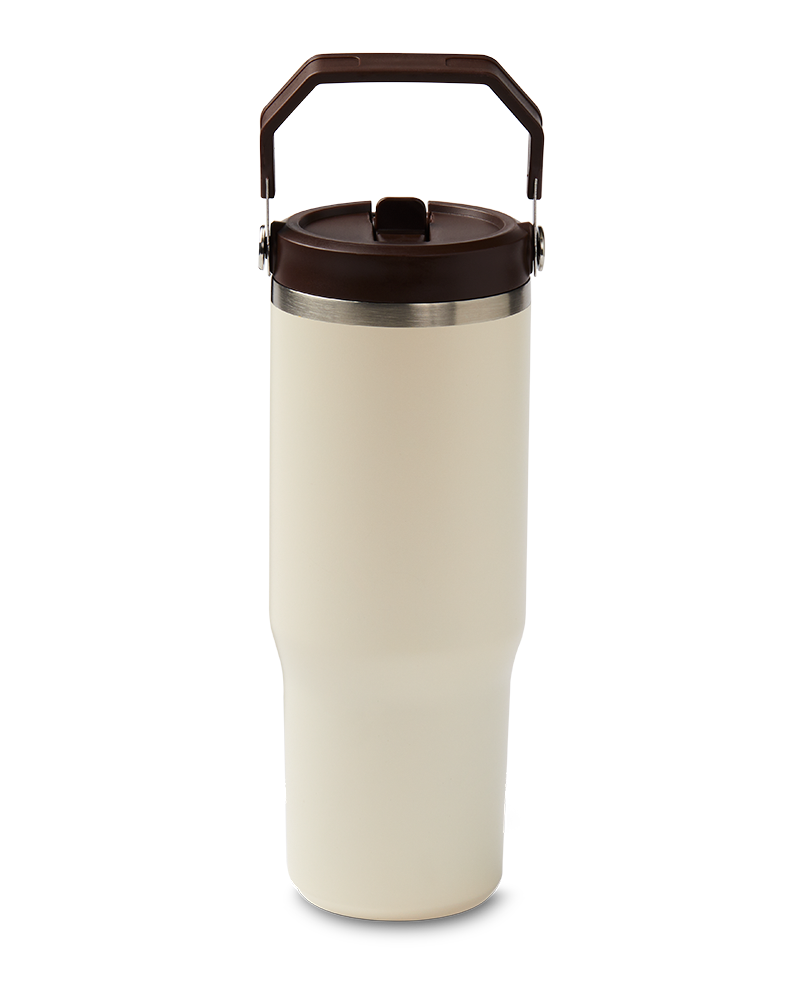 Drinkware never looked more stylish than with the Tim Hortons 30oz Top Handle Tumbler. This understated. sleek stainless steel tumbler comes with a convenient top handle. flip straw. and keeps drinks cold for up to 12 hours. Available in multiple colors. Save $0.10 on refills. offer valid in Canada only. Terms apply. Visit restaurant for details.
